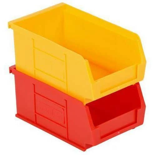 - One-piece injection moulded bin with reinforced sides and stacking rim.