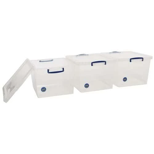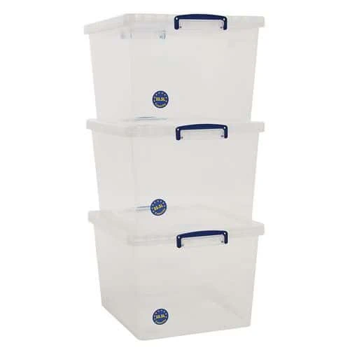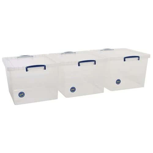 33.5L Really Useful Storage Boxes – Pack Of 3 – Transparent Plastic