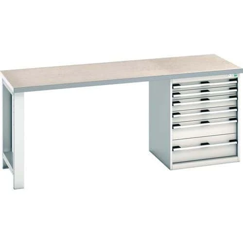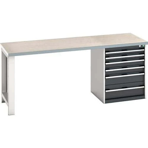 Bott Cubio Heavy Duty Workbench With Lino Worktop & Drawers HxWxD 840x2000x750mm