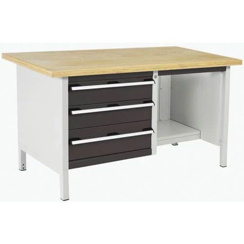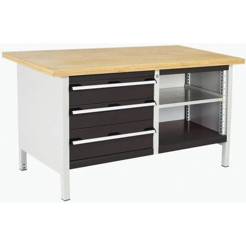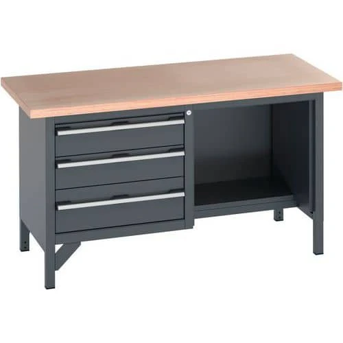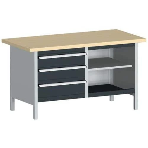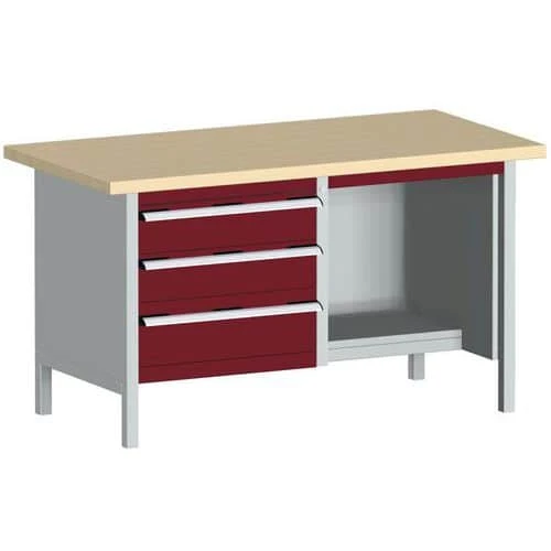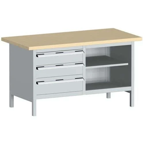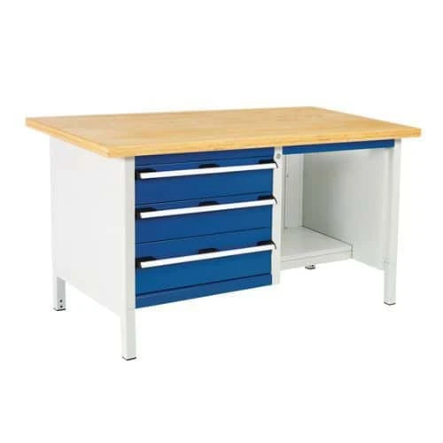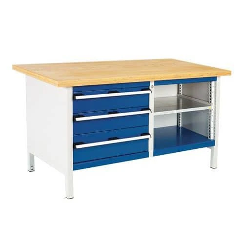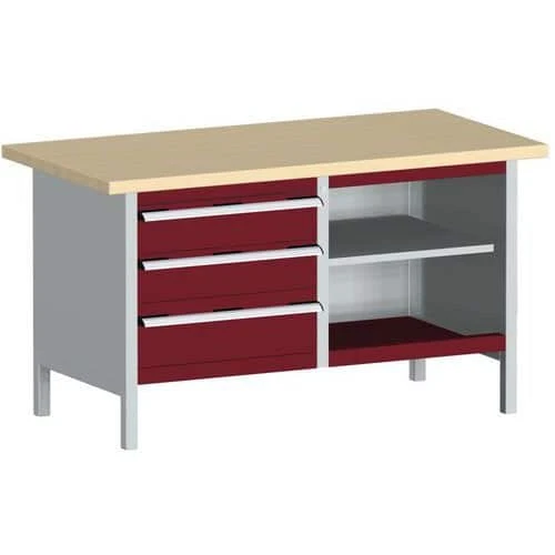 - 40mm thick multiplex worktop of resin bonded layered beech ply – hard-wearing and ideal for essential workbench tasks.