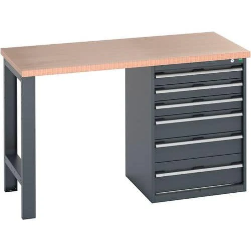- 40mm thick multiplex worktop of resin bonded layered beech ply – hard-wearing and ideal for essential workbench tasks.