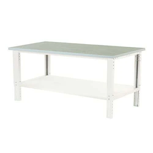 - The 40mm thick worktop has a 2mm grey linoleum surface with plastic edge-banding – ideal for working with oils, acids and chemicals.