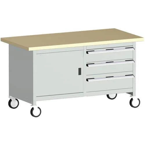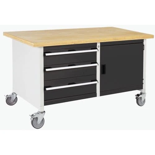 - Move your tools and equipment right to the job with this mobile workbench, with four rubber tyre 125mm diameter castors that have full swivelling action.