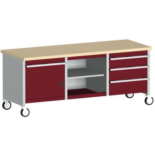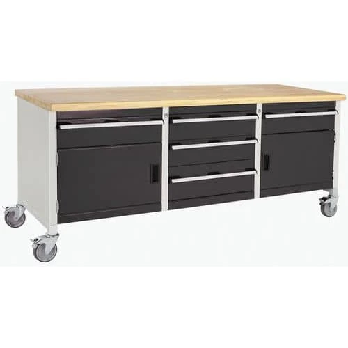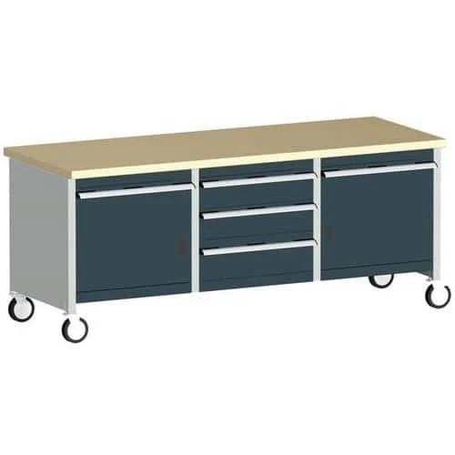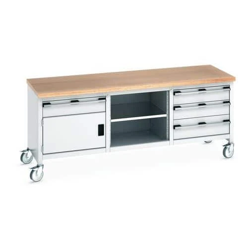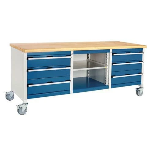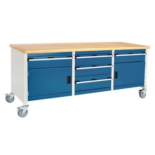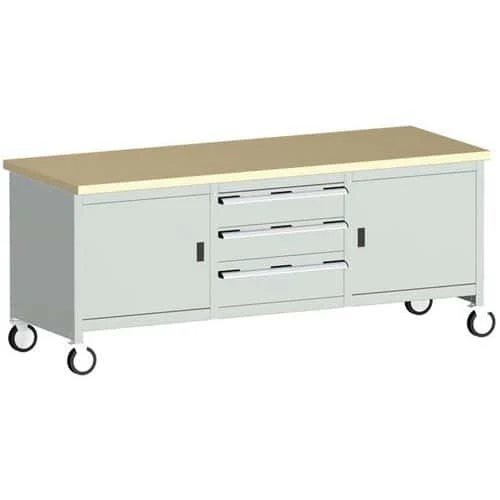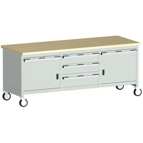 - Move your tools and equipment right to the job with this mobile workbench, with four rubber tyre 125mm diameter castors that have full swivelling action.