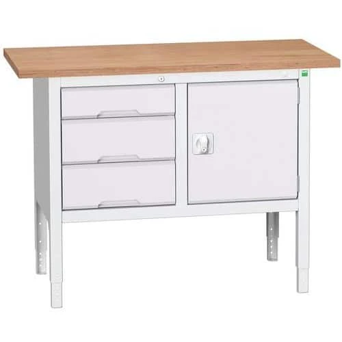Bott Verso Adjustable Workbench With Cabinet & Drawer 830-930x1250x600mm