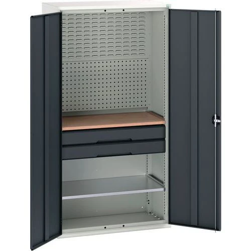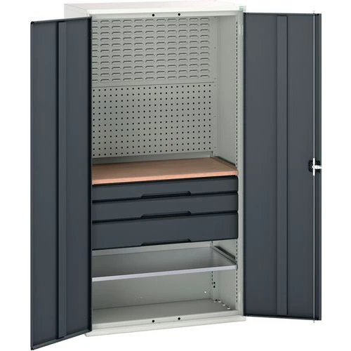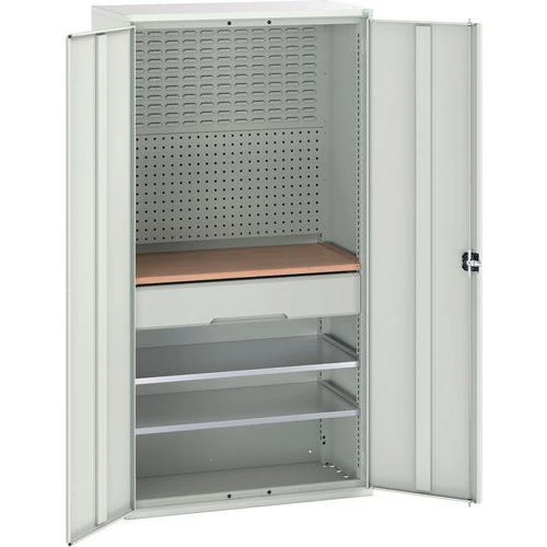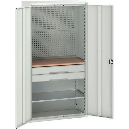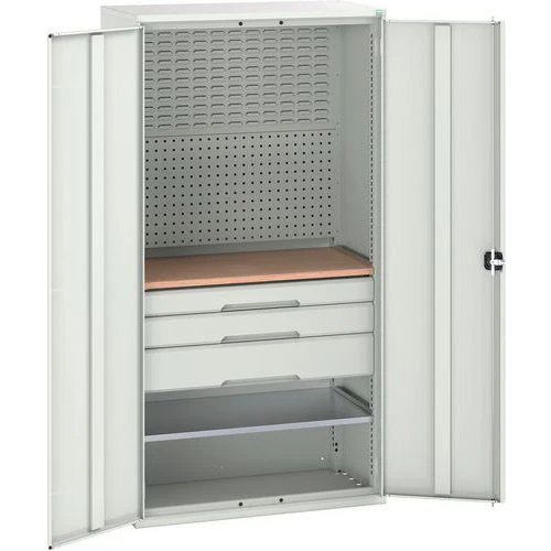 - This cupboard is a complete workshop solution, lined with Perfo and louvre panels inside, for handy, accessible and flexible tool storage.
