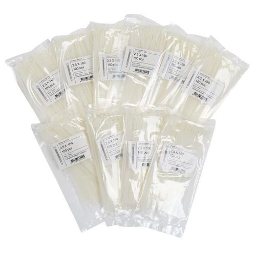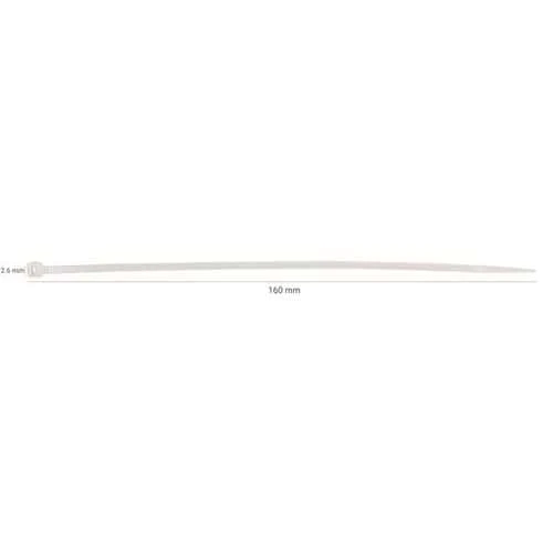 | Product Name | Cable Ties, Width: 2.6 mm, Length: 160 mm, Colour: White, Material: Nylon, Min. operating temperature: -35 °C |