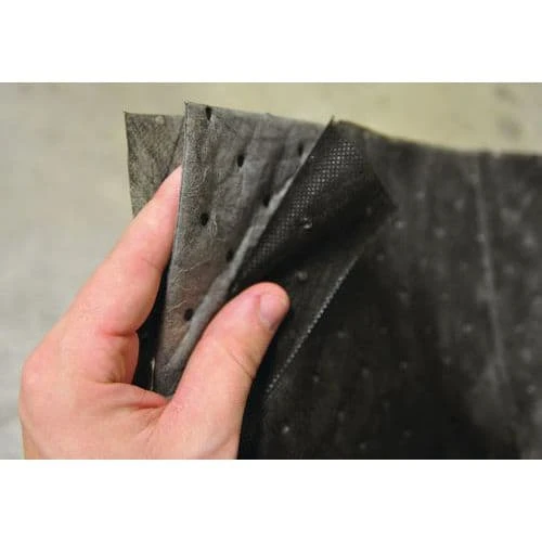 Absorbent cloth with a 2-sided reinforcement layer for superior resistance to abrasion and tears.