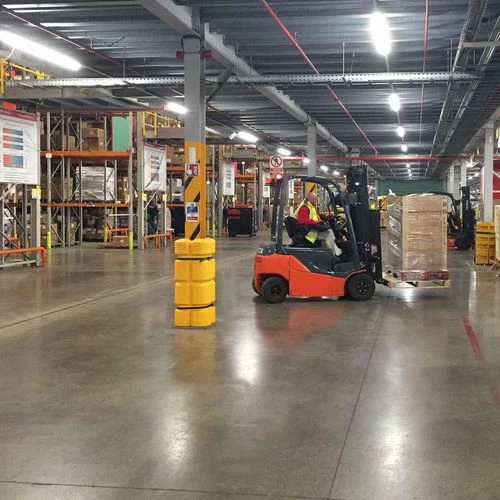 - The modular, shock-absorbing assembly installs securely and cushions columns, equipment and drivers from impacts