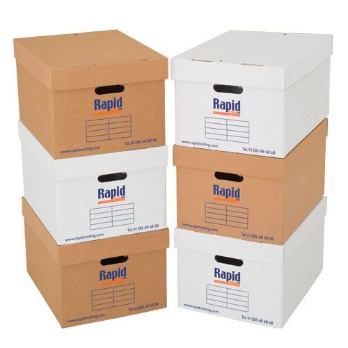Cardboard document storage boxes with up to 10kg load capacity and stacking option