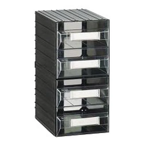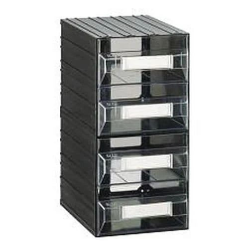 - Solid drawer unit with 4 green or transparent drawers with label holders.