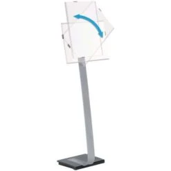- Stylish aluminium information stand with base and acrylic display frame to convey a modern image.