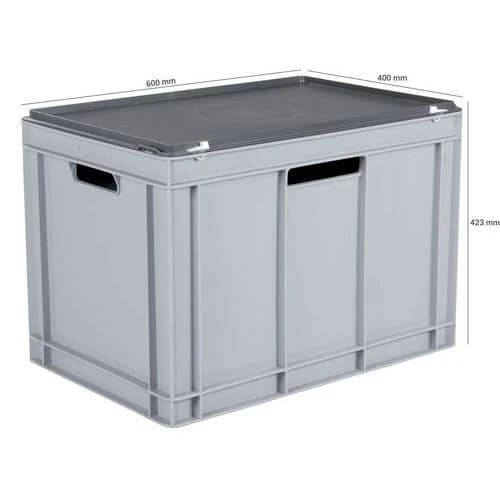 Polypropylene containers with hinged lid ranging in size from 10L to 75L