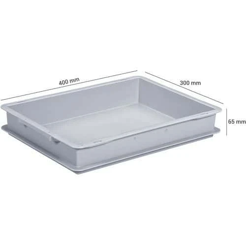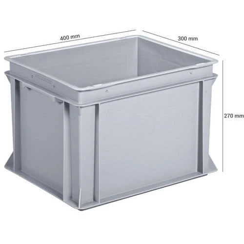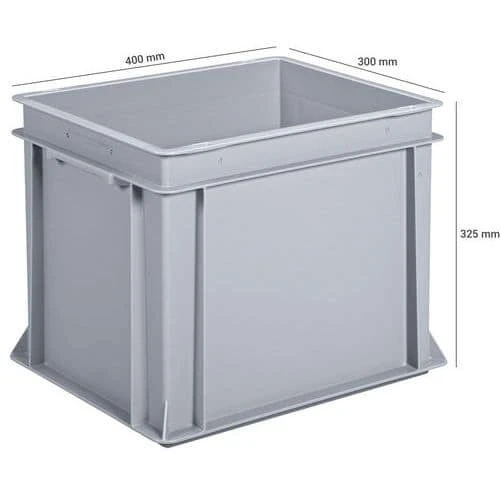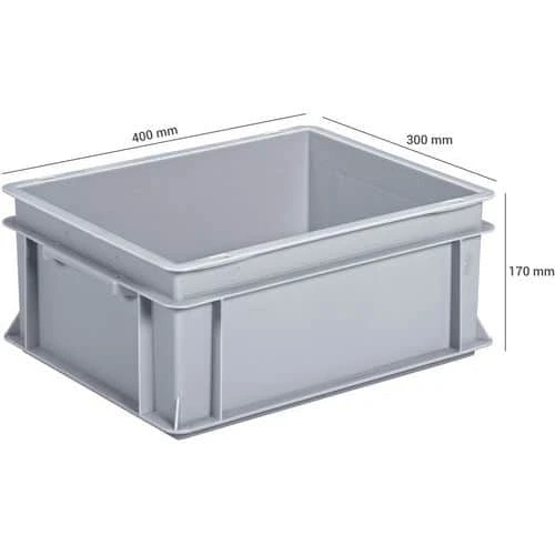 - European size container with square corners providing maximum internal volume. Easy to carry with recessed handles.