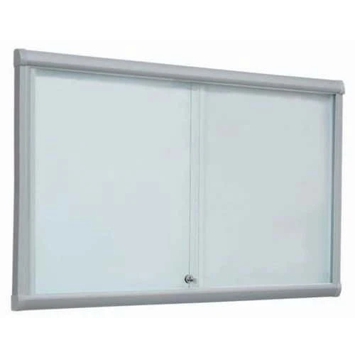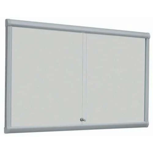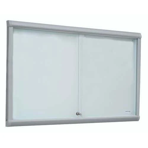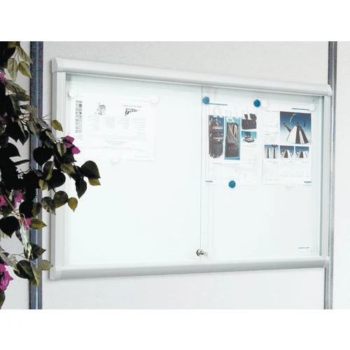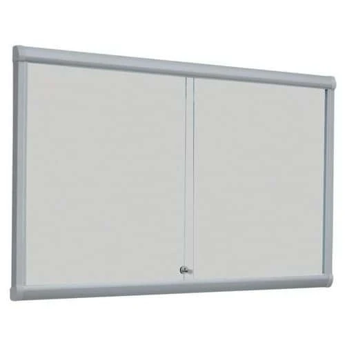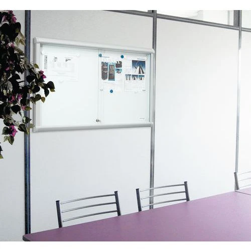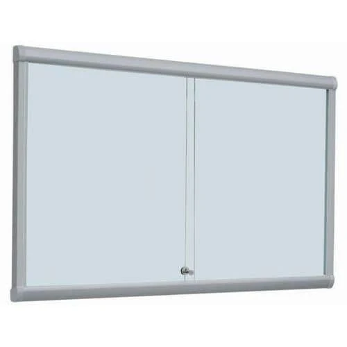 - Indoor enclosed bulletin board with anodised aluminium frame and lockable sliding doors (front lock).