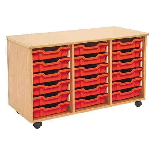 Mobile Melamine Storage Unit (635h X 1050w) Complete With 18 Shallow Gratnells Trays