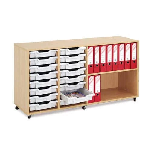 Mobile Melamine Storage Unit (754h X 1350w) Complete With 16 Shallow Gratnells Trays