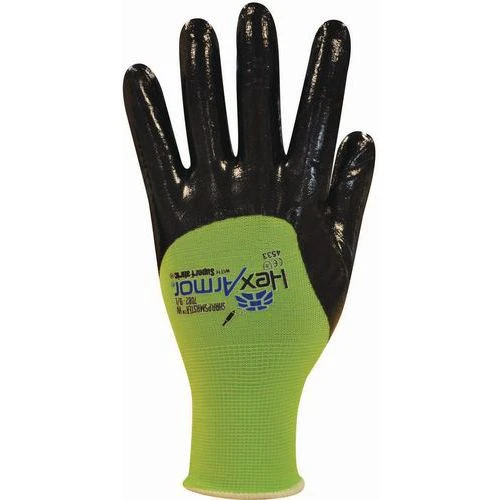 - The flat three-quarters Nitrile coating provides grip and protection against oil, liquids and grease.