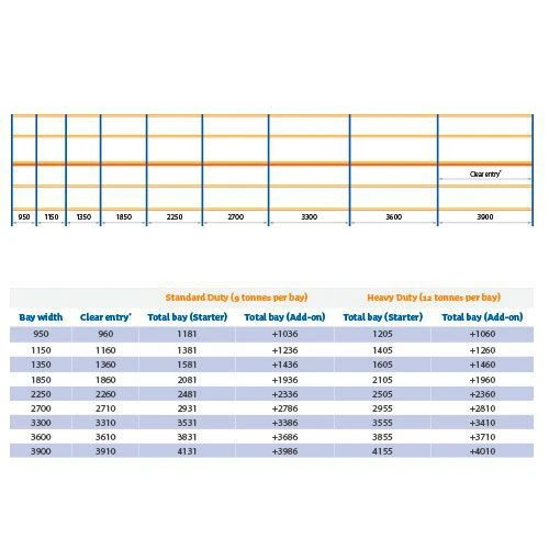 Pallet racking beams which hold up to 3000kg UDL per pair and include safety clips
