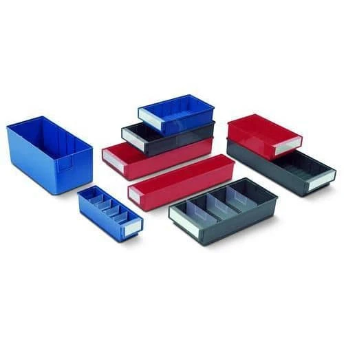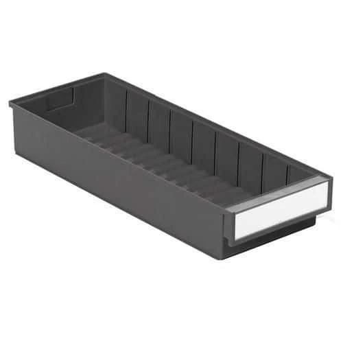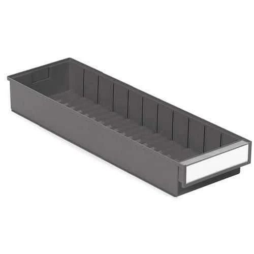 Shelf bins to fit small parts systems and mobile shelving, with corrugated base for easy picking.