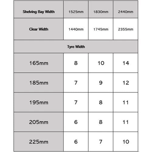 - Single Sided Tyre Rack that can hold up to 25 tyres