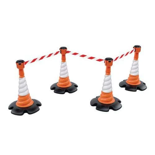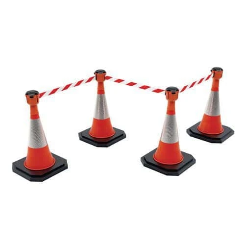 - Each unit has 9 metres of fully retractable red/white or yellow/black high-quality fabric tape.