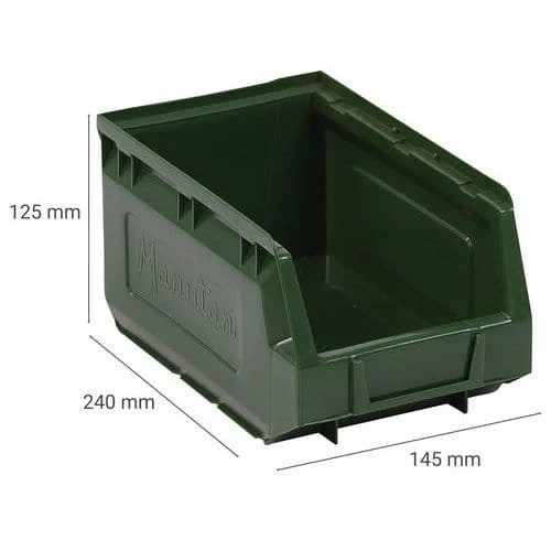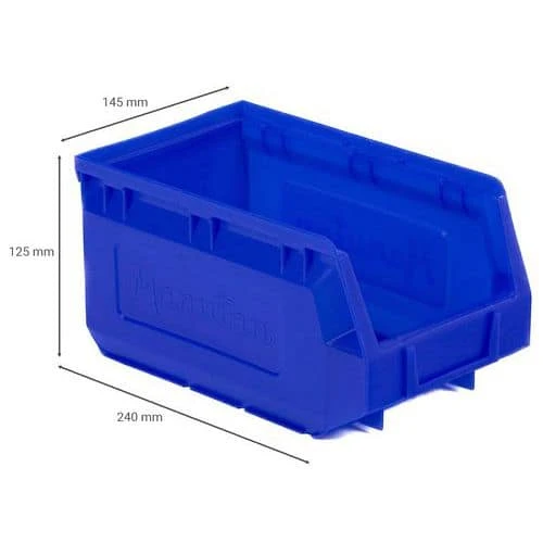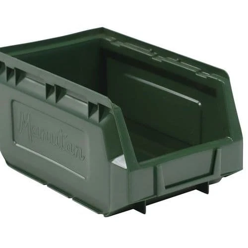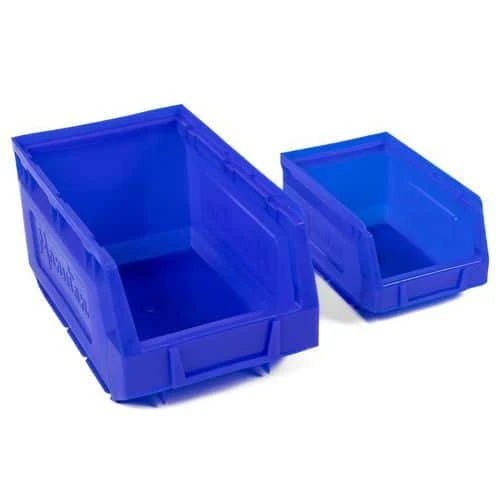 Polyethylene storage bins, perfect for workshop storage.