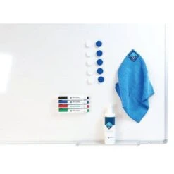 The set includes 4felt tip pens in 4different colours, a magnetic eraser with eraser pen, 1bottle of cleaning spray, 10magnets and a magnetic felt tip pen holder.