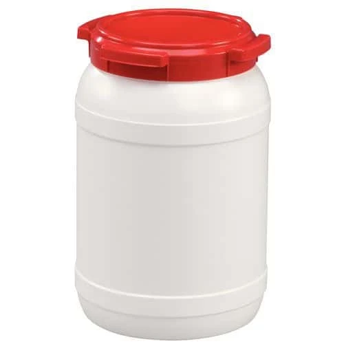 - Plastic transport barrel with very wide opening.